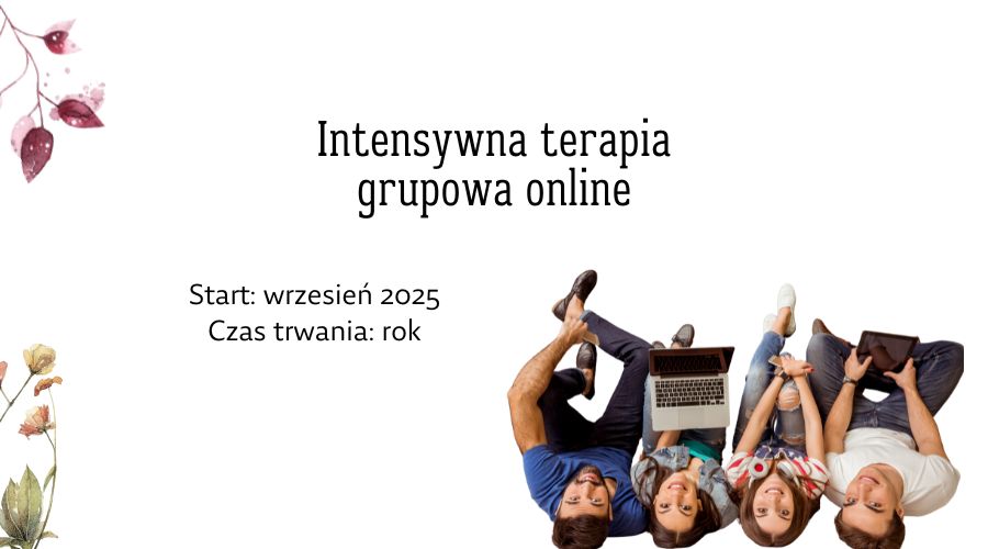 W moim gabinecie prowadzę grupy terapeutyczne on-line skierowane do osób dorosłych, które chcą pracować nad:
